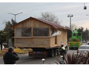 Karadeniz Sahil Yolu’nda seyir eden ahşap ev yüklü kamyon görenlerin dikkatini çekti. Atatürk Bulvarı’nda bulunan ışıklarda duran ev yüklü kamyonu gören vatandaşlar hemen fotoğraf makineleri ve cep telefonlarına sarılarak bu anı fotoğrafladılar.