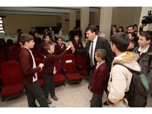 Osmangazi Belediye Başkanı Mustafa Dündar, konuşmasının ardından Türkiye ve Balkan Karate Şampiyonalarında yıldız kızlar kategorisinde şampiyon olan Elif Şen ile Temel Eğitimden Ortaöğretime Geçiş Sınavı’nda bütün soruları doğru cevaplayan Esin Şahin’i tebrik etti.