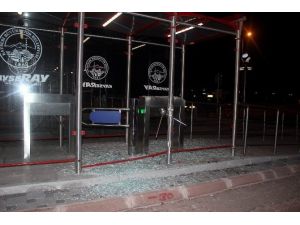 Kayseri’de bir otomobilin yoldan çıkarak tramvay durağına girdi.