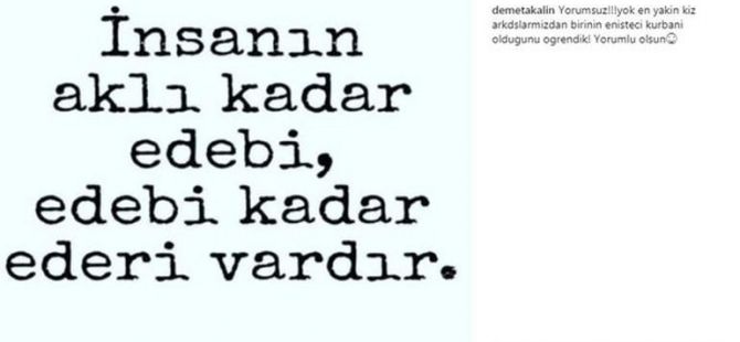 14 Temmuz 2017 Cuma 12:47"Haberi görünce şok geçirdim! Araştırdım, sordum. Meğer o gece herkes görmüş. 16 yıllık arkadaşım. Asla beklemezdim. Telefon açıp inkar etmek istedi. Ama cevap vermedim. Instagram’dan da sildim. O benim için artık bitti. Bugün de ölmediysem bir daha ölmem. Onlara tek şey diyorum..."