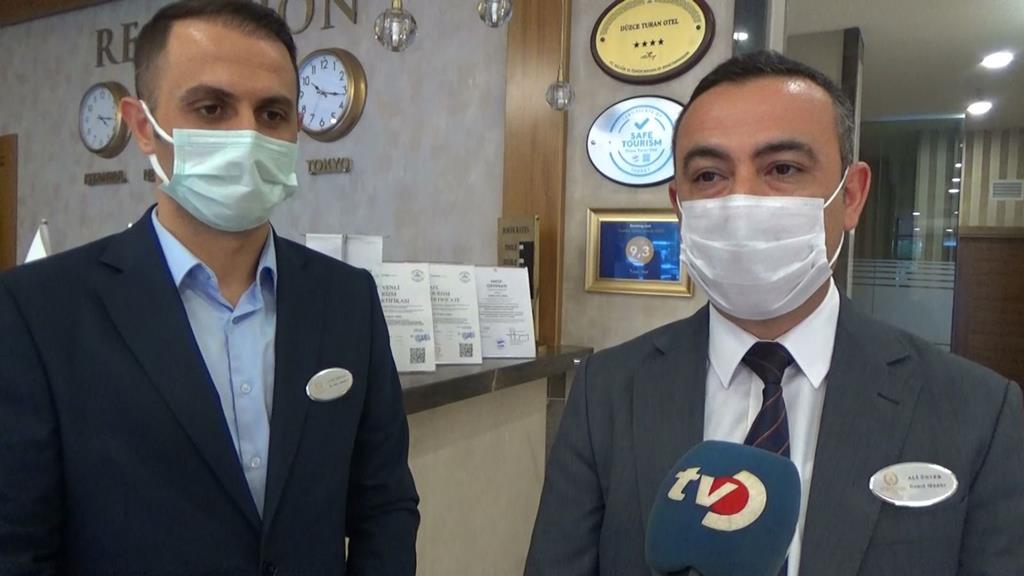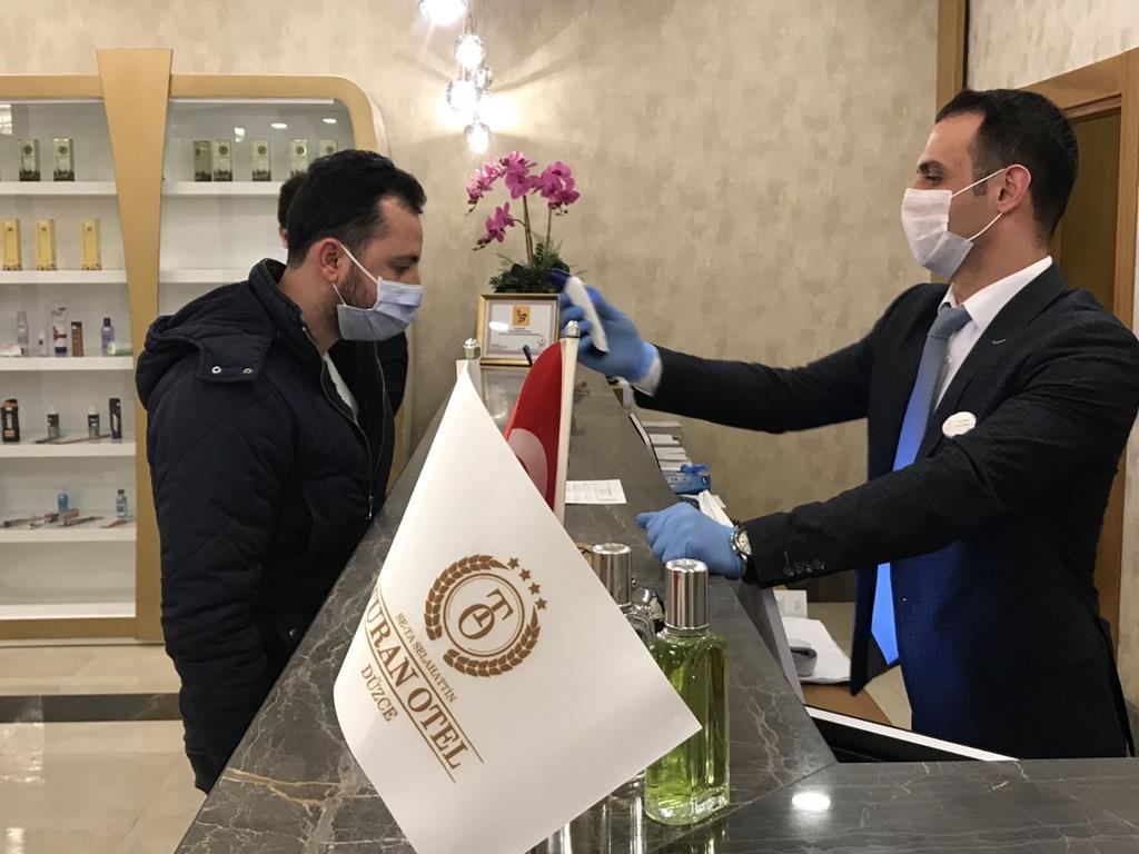 Öncesinde otele gelen müşteriler için Düzce kolonyaları ikramı da yapılarak misafirlerin HES koduna göre müşterilerinin konaklamasına izin veriyor. HES kodu uygulamasını ise Bakanlık genelgelerinden önce hayata geçirerek misafirlerinin sağlığını ön planda tuttuğunu gösteren Turan Otel, bu konuda da Türkiye’nin öncü otelleri arasında yerini aldı. Alınan önlemler hakkında bilgiler veren Turan Otel Genel Müdürü Ali Ünver; “Pandeminin ilk başladığı günden bu yana işletmemiz kapanmadı. Pandeminin en başından beri buradayız. Hizmetlerimize devam ediyoruz. Sağlık Bakanlığı, İçişleri Bakanlığı ve Turizm Bakanlığı’nın yayınladığı genelgelere bağlı olarak çalışmalarımız devam ediyor. İletmemizde daha öncesinde de yaptığımız uygulamalara devam ediyoruz. Zaten otellerde temizlik 1. kuraldır. Bizde temizliğimizden pandemi olsun yada olmasın hiçbir zaman ödün vermedik. El dezenfektanımız zaten pandemi olmasa da vardı. Bugünlerde bildiğiniz gibi hepsi değerlendi. Temel ihtiyaç malzemesi oldu. Mart ayında da biz bu şeklideki çalışmalarımıza devam ettik. Turizm Bakanlığı’nın güvenli turizm sertifikası adı altında bir takım denetlemeler başladı. Sağlık bakanlığı ile ortak çalışmalar yürütüldü. 160 kriterden oluşan güvenli turizm serfifikasını dqa almaya hak kazandık. Hijyen paspasından odalarımızın dezenfekte edilmesine, mutfak hijyeninden oturma düzenine, müşterilerin kullandığı havluları poşetlememize kadar 160 kriterden denetleniyoruz. Özellikle son dönede HES Kodu gündemde. Biz HES kodunun bankanlıklar tarafından zorunlu tutulmadan öncede misafirlerimizden talep ediyorduk. Bu uygulamaya geçmiştik. Bunun yanı sıra sağlık beyan formumuz var. Bu form ile misafirlerimizin giriş işlemlerini yapıyoruz. Önlemlerimizi üst düzeyde almış bulunmaktayız” dedi.