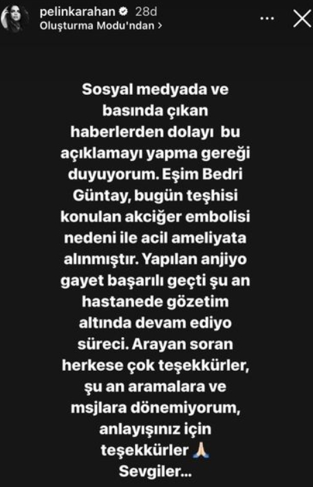 Tv100'den Birsen Altuntaş'ın haberine göre; Ünlü oyuncunun eşi Bedri Güntay enboli nedeniyle acilen ameliyata alındı. Birkaç gündür kendini kötü hisseden ve Ulus’ta bir hastanede yatan Bedri Güntay’ın damarına pıhtı attığı tespit edildi. Haberimizin devamını okumak için Lütfen sonraki sayfaya geçiniz..