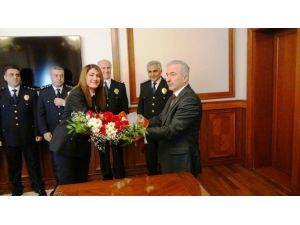 Polis Haftası nedeniyle ziyaret gerçekleştiren İl Emniyet Müdürü Urhal ve beraberindekiler, günün anısına Vali Süleyman Kamçı’ya çiçek verdi. Ziyaretten duyduğu memnuniyeti dile getiren Vali Kamçı, "Polisimiz başta vatandaşımızın can ve mal güvenliği olmak üzere halkımızın güvenliğini sağlayan bir birimimizdir. Polisimize pek çok görev düşmekte ve bu görevlerini de layıkıyla 24 saat gece gündüz demeden ifa etmekte. Başarılı çalışmalarınızdan dolayı hepinize teşekkür ediyorum. Yetiştirdiğiniz öğrencileriniz memleketimizin değişik yerlerinde hizmet edecekler, onlara yaptığınız katkılardan dolayı da teşekkür ediyorum ve tüm camianızı kutluyorum” dedi.