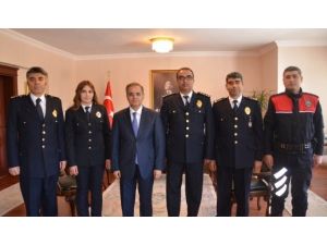Türk Polis Teşkilatı’nın 170.yıldönümü kutlamaları kapsamında, İl Emniyet Müdürü Candemir Özdemir ve emniyet personeli, Kilis Valisi Süleyman Tapsız’ı makamında ziyaret etti.