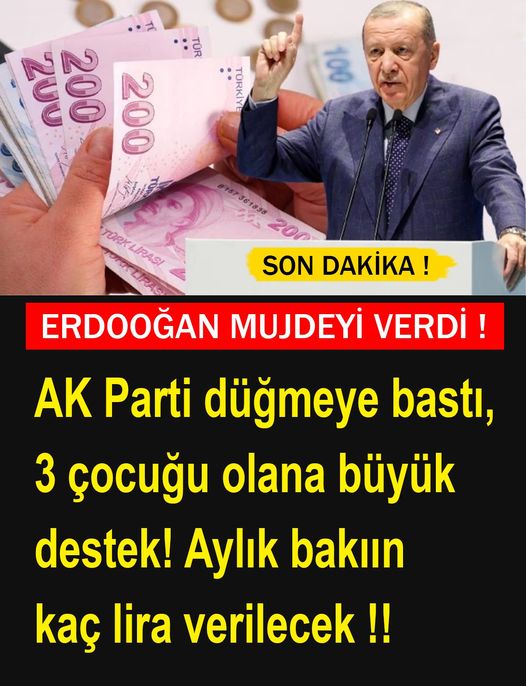 10 Temmuz 2024 Çarşamba 22:39AK Parti sorumluluk aldı ve milyonlarca insanın beklentisiyle düğmeye bastı, 3 çocuğu olana büyük destek! Aylık baakıın kaç lira verilecek. Haberimizin devamını okumak için Lütfen sonraki sayfaya geçiniz..