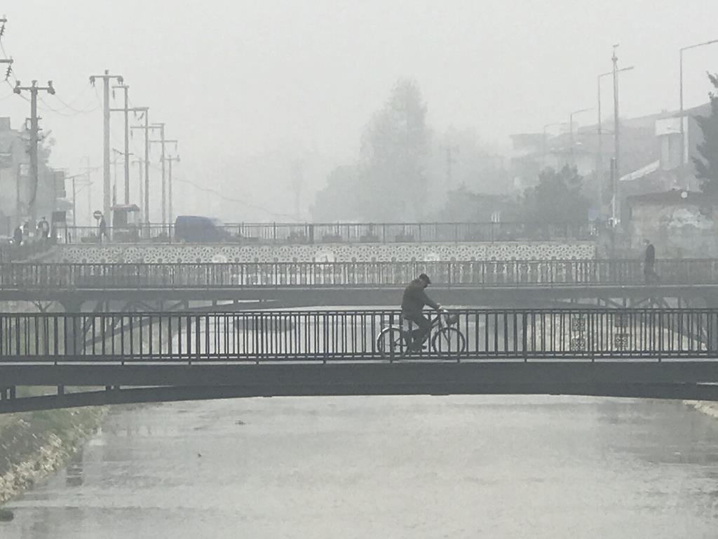 Sis nedeniyle görüş mesafesi düşerken yayalar ve araç sürücüleri ilerlemekte zorluk yaşadı.