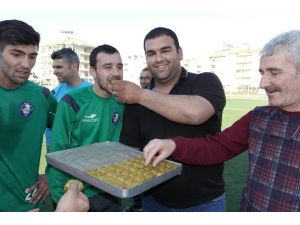 Salihli 45.5 Taraftarlar Derneği üyeleri, Salihli Belediyespor teknik heyet ve futbolculara baklava ikramında bulunarak, Horozköyspor maçında başarı diledi.