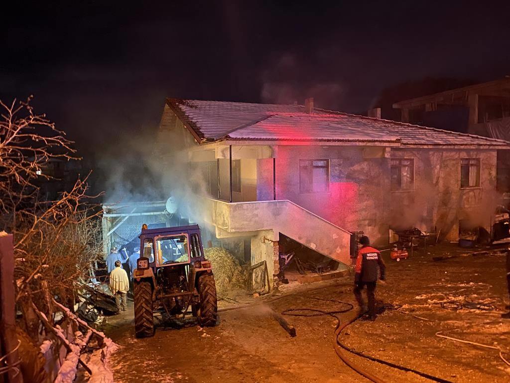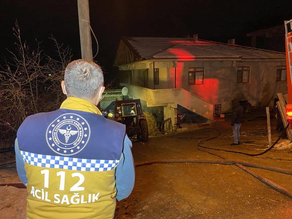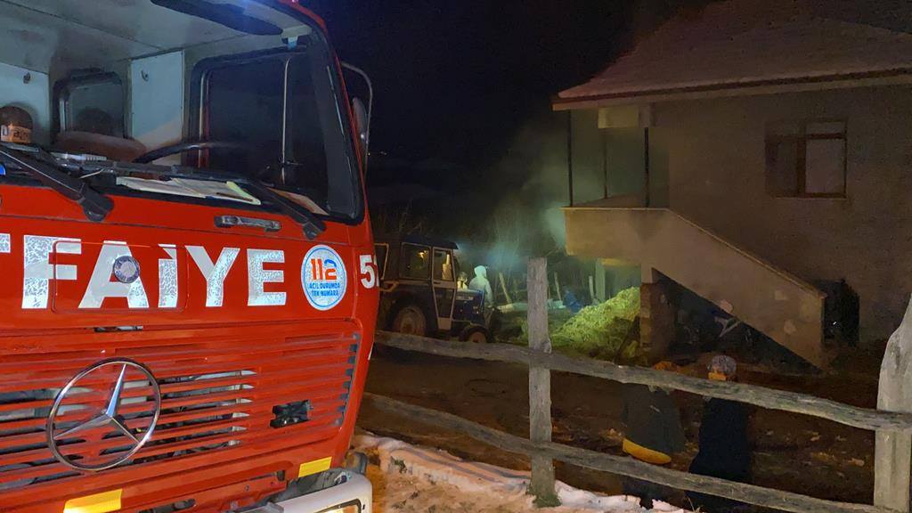 Yangın gece saatlerinde Merkez ilçesine bağlı Eminaçma Köyü’nde 2 katlı evin birinci katında bulunan samanlıkta meydana geldi.