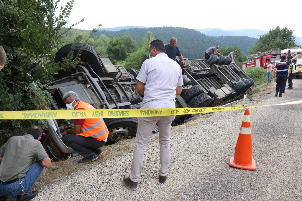 Bolu’nun Mengen ilçesinde seyir halindeyken şarampole devrilen saman balyası yüklü tırın sürücüsü Coşkun Topraklı (46) olay yerinde hayatını kaybetti.