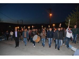 Cumhuriyet Meydanında bir araya gelen Şenkaya’lılar Şenkaya Kaymakamı Ahmet Özkan ve Şenkaya Belediye Başkanı Görbil Özcan’ın katılımıyla meşaleleri yakarak davul zurna eşliğinde marşlar söyleyerek Atatürk Caddesine doğru yürüyüşe geçtiler.