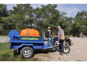 Silifke Belediyesi çam ağaçlarının kurumasına neden olan çam keseciği tırtılları ile mücadele başlattı.