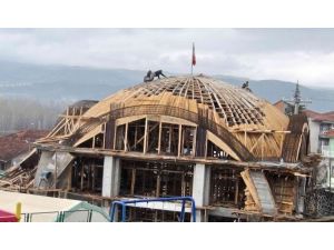 Kütahya’nın birinci derece deprem kuşağındaki ilçesi Simav’da tamamlandığında turistik kentin en büyük camileri arasına girecek olan 9 şiddetindeki depreme dayanıklı cami inşaatının karkası bitme aşamasına geldi.