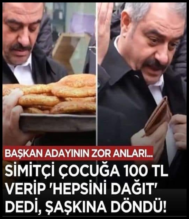 29 Ocak 2024 Pazartesi 00:40AK Parti Diyarbakır Büyükşehir Belediye Başkan Adayı Mehmet Halis Bilden, vatandaşlarla buluşmasında simit satan bir çocuğa 100 TL vererek bütün simitleri dağıtmasını söyledi. …Simitçi çocuğa 100 TL verip ‘Hepsini dağıt’ dedi, hiç beklemediği yanıt aldı!… Haberimizin devamını okumak için Lütfen sonraki sayfaya geçiniz..