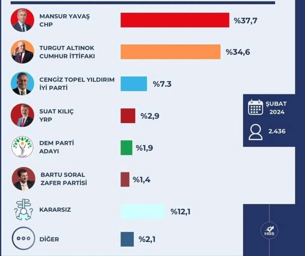 20 Şubat 2024 Salı 21:22Diğer adaylar arasında Zafer Partisi'nden Bartu Soral'ın yüzde 1,4'lük bir destek aldığı görüldü. Kararsız seçmenlerin oranının yüzde 12,1 olduğu ve diğer adaylara yönelik oy oranının ise yüzde 2,1 olduğu belirtildi.