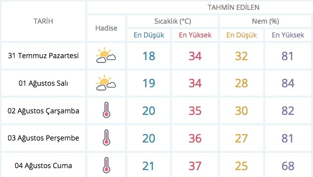31 Temmuz 2017 Pazartesi 10:36EDİRNE 5 GÜNLÜK HAVA DURUMU