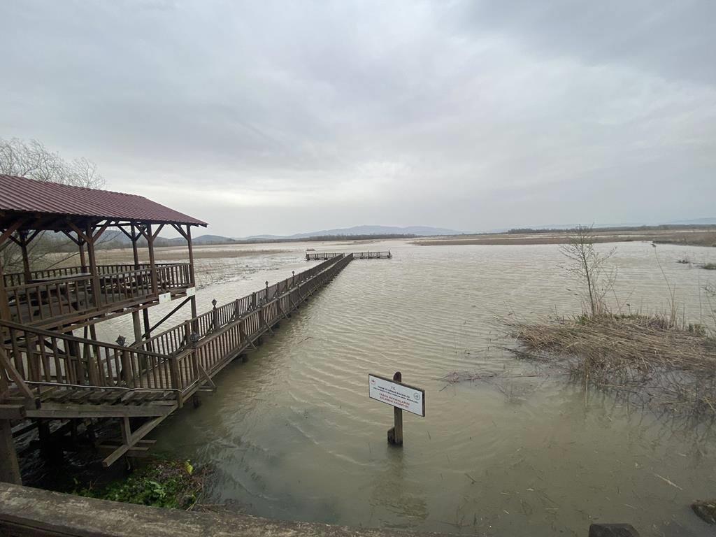 Samandere şelalesinde taşkın meydana gelirken, Efteni Gölü’nde de su seviyesi iskeleye kadar yükseldi.