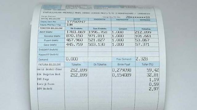 24 Ocak 2022 Pazartesi 00:303) Elektrik faturasında ödediğimiz vergiler de yükseldi mi? Sakarya: Tabii ki yükseldi. Şimdi en büyük zam enerji bedeline geldi. Enerji bedeli üzerinden TRT Payı ile Enerji Fonu kaldırıldı. Belediye Tüketim Vergisi hala kesiliyor. Artı bütün bunların hepsinin toplamına KDV de ekleniyor. Belediye Tüketim Vergisi dediğimiz şey, enerji bedelinden alınıyor. Enerji bedeli yüzde 127'lere çıktı. Toplamda faturaların artışı bir önceki döneme göre yüzde 125 oldu. Dolayısıyla vergi de artmış oldu. Koçal: 400 TL toplam tutarlı faturanın KDV'si 61 TL. Buna paralel kayıp kaçak oranları için alınan ücretler de yükseliyor, faturada kullanılan enerji miktarı tek kalem de gösterildiği için bunun içinde neler olduğunu bilemiyoruz. ...............HABERİN DEVAMI İÇİN FOTOĞRAFA TIKLAYIN