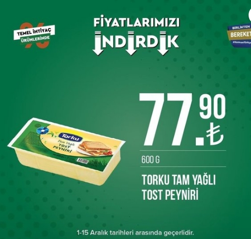 03 Aralık 2022 Cumartesi 21:49torku tost peyniri 77.90 tl. 1-15 Aralık tarihleri arasında satışa sunulacak olan indirimli ürünleri öğrenmek isteyenler arama motorlarını meşgul ediyor.