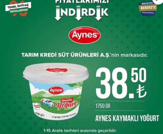 03 Aralık 2022 Cumartesi 21:491-15 Aralık tarihleri arasında satışa sunulacak olan indirimli ürünleri öğrenmek isteyenler arama motorlarını meşgul ediyor.Kaymaklı yoğurt 38.50 tl. den satışa sunulacak.