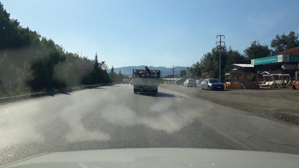 Düzce’den Cumayeri’ne giden bir kamyonetin kasasında tehlikeli yolculuk vatandaş kamerasına yansıdı.