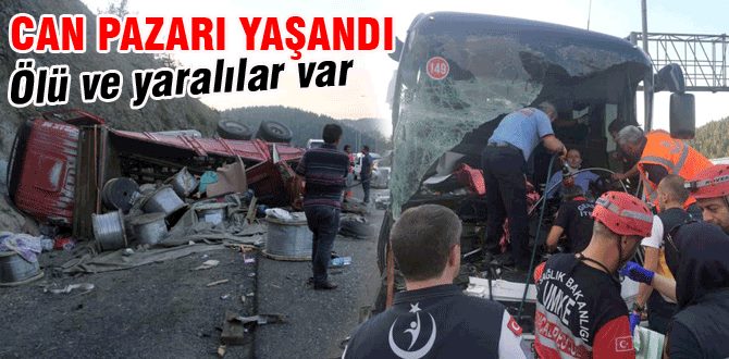 TEM otoyolu Bolu kesiminde yolcu otobüsü ile kamyonun çarpıştığı trafik kazasında 1 kişi hayatını kaybetti, 21 kişi yaralandı.