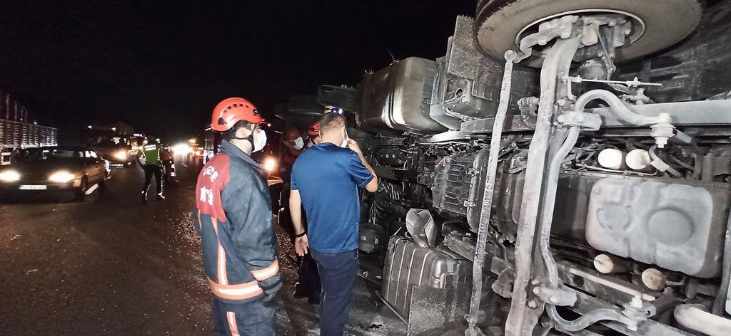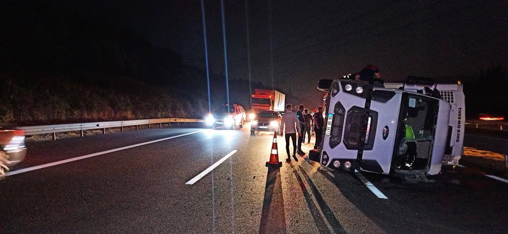 TEM Otoyolu’nda sürücüsünün direksiyon hakimiyetini kaybettiği kamyon devrildi. Kazada kamyon sürücüsü yaralandı.