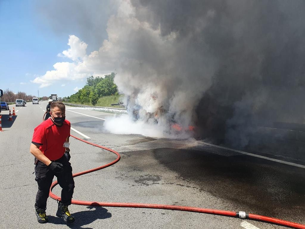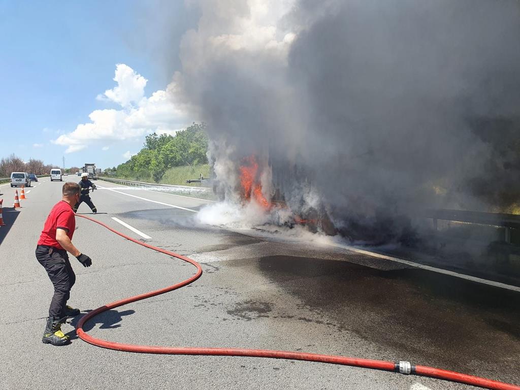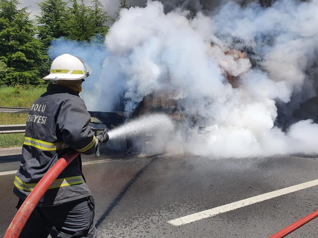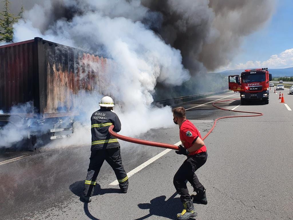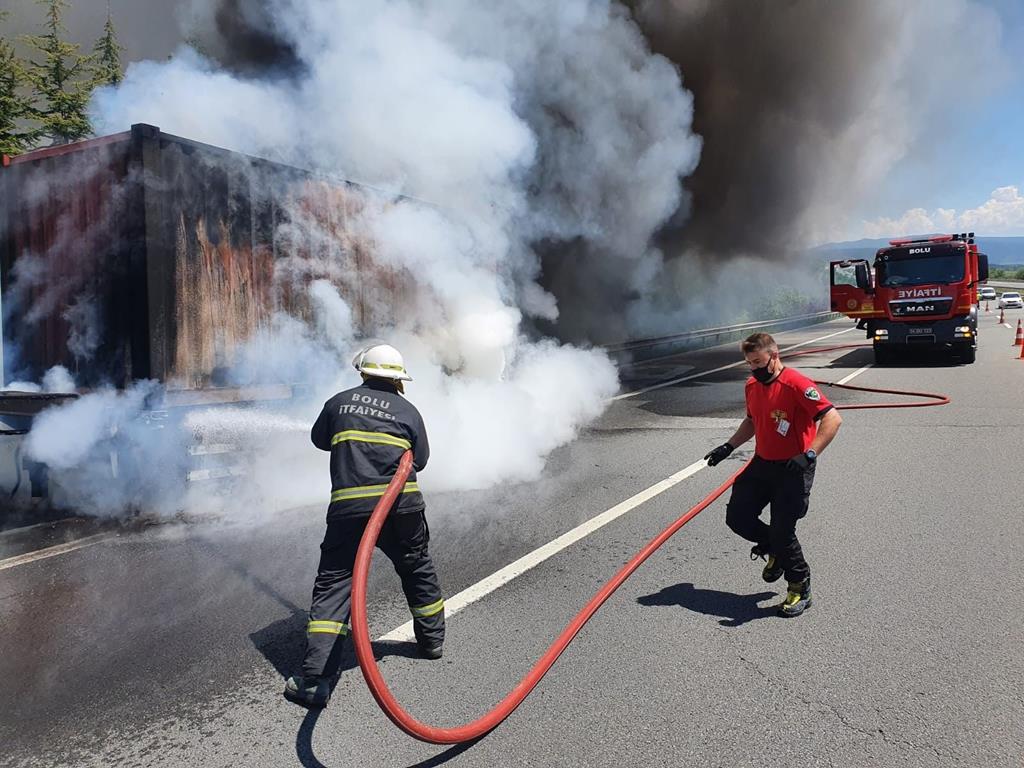 Lastiklerden yükselen alevleri gören sürücü aracı emniyet şeridine çekerek tırın çekici ile dorse kısmını birbirinden ayırdı. Rüzgarın da etkisiyle kısa sürede büyen yangın dorseye sıçradı.