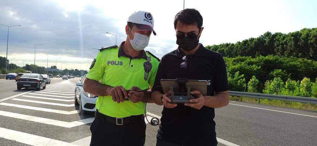 Kurban Bayramı tatilinin sona ermesiyle birlikte trafikte yoğunluk yaşanıyor. TEM otoyolunu kullanan sürücüler ise yoğunluk sebebiyle zaman zaman ilerlemekte güçlük geçiyor. Düzce İnsansız Hava Araçları Büro Amirliği ve Bölge Trafik Denetleme Şube Müdürlüğü ekipleri, bazı sürücülerin daha hızlı ilerleyebilmek için emniyet şeridini kullanması üzerine drone ile denetim gerçekleştirdi. Denetimler sırasında dronu fark eden sürücüler de ceza yememek için sağ şeride geçmeye çalıştı.