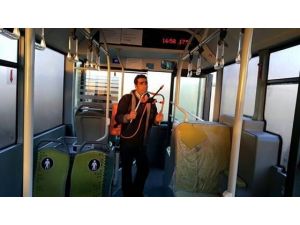 AĞRI (İHA) – Ağrı’nın Doğubayazıt ilçesindeki toplu taşıma araçları dezenfekte ediliyor.