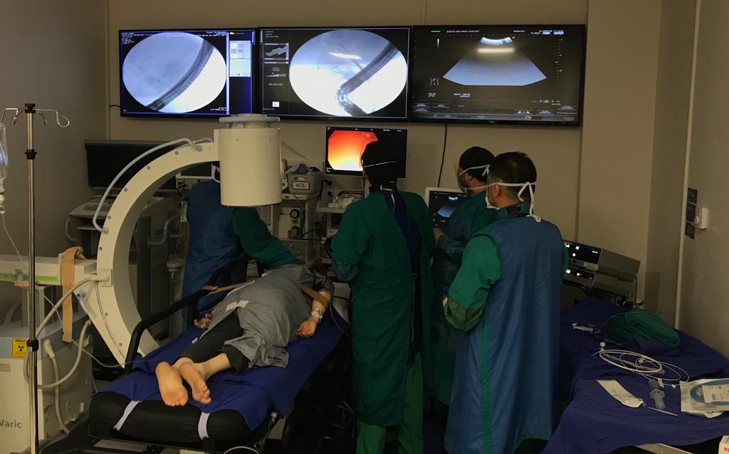 16 Nisan 2020 Perşembe 20:55Türkiye’de ilk kez bir devlet kurumunda midesi olmayan hastaya Hibrid EUS-ERCP yapıldığını vurgulayan öğretim Üyelerimiz, komplikasyon riskinin diğer işleme göre bir miktar daha fazla olmasına karşın bu işlem sonrası hastanın torba taşımasına gerek kalmadığını ifade etti. Düzce Üniversitesi öğretim üyeleri; Düzce Üniversitesi Hastanesi’nde ileri endoskopik girişimlerin yapılabilmesine imkan verecek teknik donanımı sağlayan ve gerekli sarf malzemeleri hızla tedarik eden Düzce Üniversitesi Rektörü Prof. Dr. Nigar Demircan Çakar, Rektör Yardımcısı ve Tıp Fakültesi Dekanı Prof. Dr. İdris Şahin, Düzce Üniversitesi Hastanesi Başhekimi Prof. Dr. Öner Abidin Balbay başta olmak üzere kendilerine her türlü desteği sağlayan tüm yönetici ve çalışanlara teşekkürlerini iletti. Düzce Üniversitesi Hastanesi Başhekimi Prof. Dr. Öner Abidin Balbay da içinde bulunduğumuz bu salgın sürecinde özveriyle çalışmalarını sürdüren öğretim üyelerine ve ekibine teşekkür ederken, başarılarının devamını diledi.