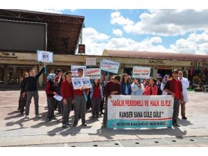 Yapılan yürüyüşte öğrenciler “ Farkındayız Kanseri Yeneceğiz, Bugün 1 Saat Yarın Bir Hayat, Kansersiz Yaşam Elinizde, Kanserden Değil Geç Kalmaktan Kork, Taramalarınızı Yaptırın Kanserden Korkmayın” yazılı pankart açtı.