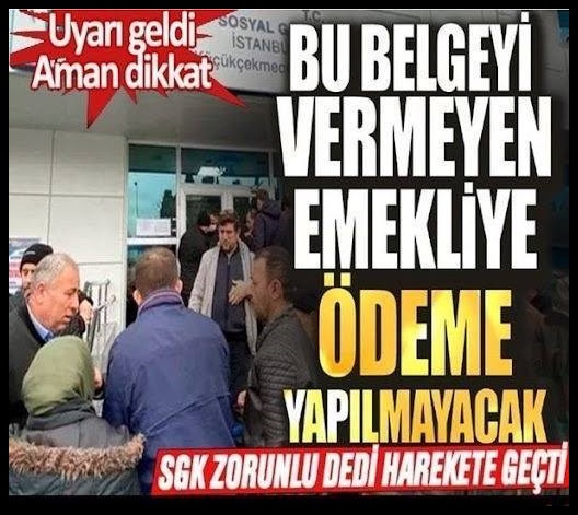 12 Eylül 2025 Cuma 22:29SGK zorunlu diyerek açıkladı! Bu belgeyi vermeyen emekliye ödeme yapılmayacak. Sosyal Güvenlik Kurumu (SGK), milyonlarca emekliyi yakından ilgilendiren kritik açıklamalarda bulundu. Haberin devamını okumak için Lütfen sonraki sayfaya geçiniz