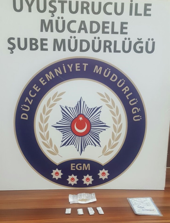 Uyuşturucu madde ticareti yapmak suçundan aranan cezaevi firarisi S. A. sahte kimlik ve üzerinde uyuşturucu madde ile Düzce İl Emniyet Müdürlüğü Uyuşturucu ile Mücadele Şube Müdürlüğü ekipleri tarafından yakalandı.