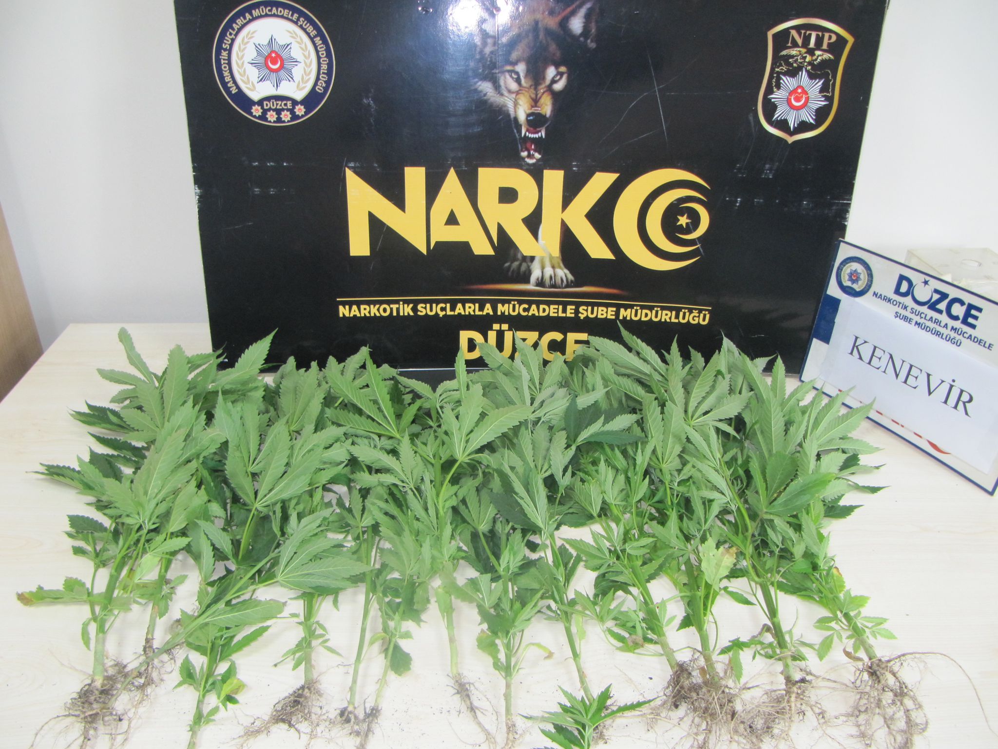 Düzce İl Emniyet Müdürlüğü Narkotik Suçlarla Mücadele Şube Müdürlüğü ekipleri Cumhuriyet Başsavcılığı koordinesinde yürüttükleri çalışmalarda kent merkezinde bir binanın teras katında yapılan aramada boyları 50 cm ile 60 cm Aralığında 15 kök kenevir bitkisi ele geçirildi.