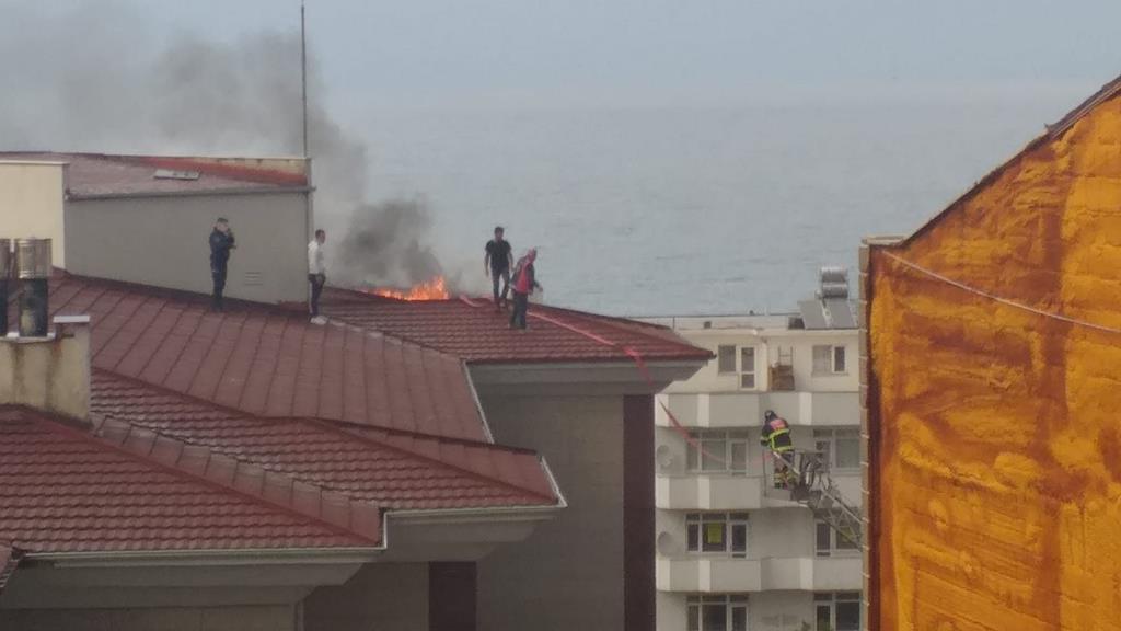 Düzce’nin Akçakoca ilçesinde belediye binasının çatısında tamir ve bakım çalışmaları sırasında elyafın kıvılcım alması sonucu yangın çıktı.
