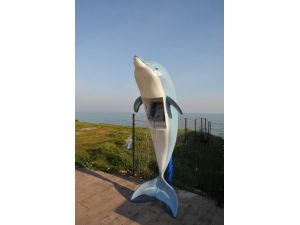 Akçakoca’da sahil kesimine konulan Yunus balığından ankesörler dikkat çekiyor.