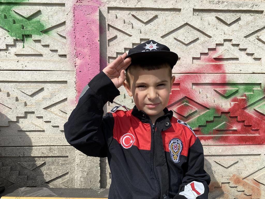 Üniformasını giydiği Motorize yunus timlerini karşısında görünce ne yapacağını şaşıran 4,5 yaşındaki Muhammet Emin, motora binerek siren çaldı. Polis ağabey ve ablaları ile fotoğraf çekilen minik baş komiser, yunus polislerine selam vererek uğurladı.